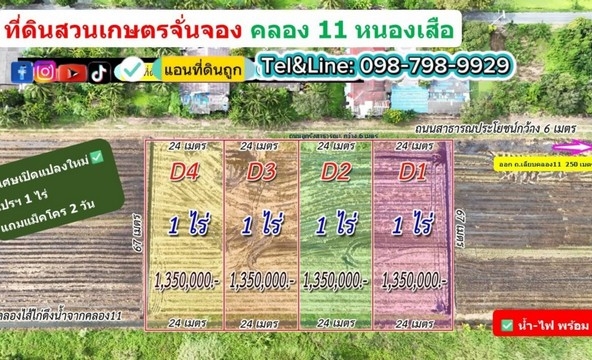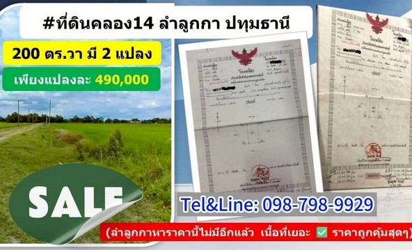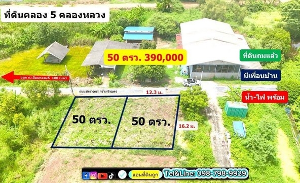 ที่ดิน คลอง5 คลองหลวง ซอย 68 ตะวันออก 50 ตรว. 390,000