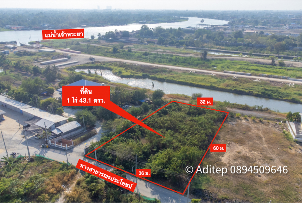 ที่ดินอยู่ใกล้แม่น้ำเจ้าพระยาแค่ 300 เมตร หากขึ้นอาคารสูงสามารถเห็นวิวโค้งน้ำได้สบาย
