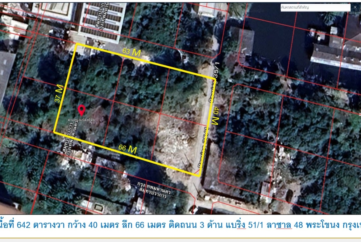 ที่ดิน สร้างสร้างอพาร์ตเม้นท์ สร้างOffice ถนนแบริ่ง-ลาซาล เนื้อที่ 642 ตรว. วาละ 55,000 บาท พระโขนง กรุงเทพฯ