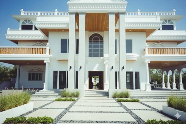 รพ.นพรัตนราชธานี คุ้มเกล้า 1.9 กม. ขายคฤหาสน์ บ้าน 3.5 ชั้นรวมดาดฟ้า 5นอน 5 น้ำ