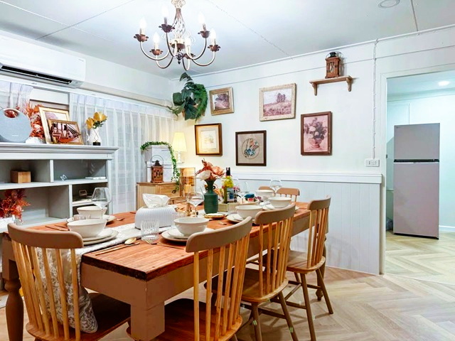 – โต๊ะทานอาหารขนาดใหญ่ และชุดจานชามครบครัน